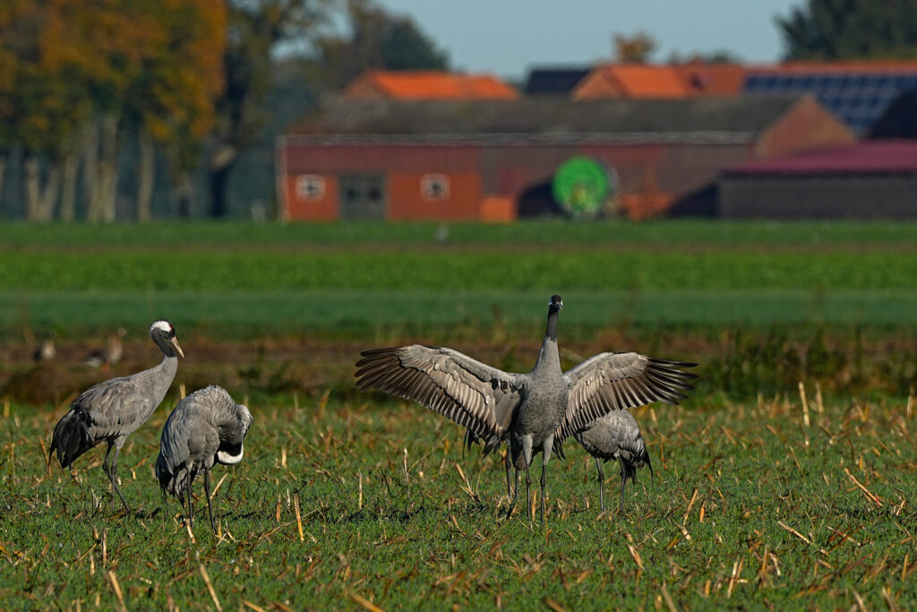 Entlang der Düversbrucher Straße konnten ich einige Trupps Kraniche beobachten, allerdings waren die Ansammlungen meisst recht klein. Mal ca. 35 Stück, dann aber auch mal nur 2 Vögel.
