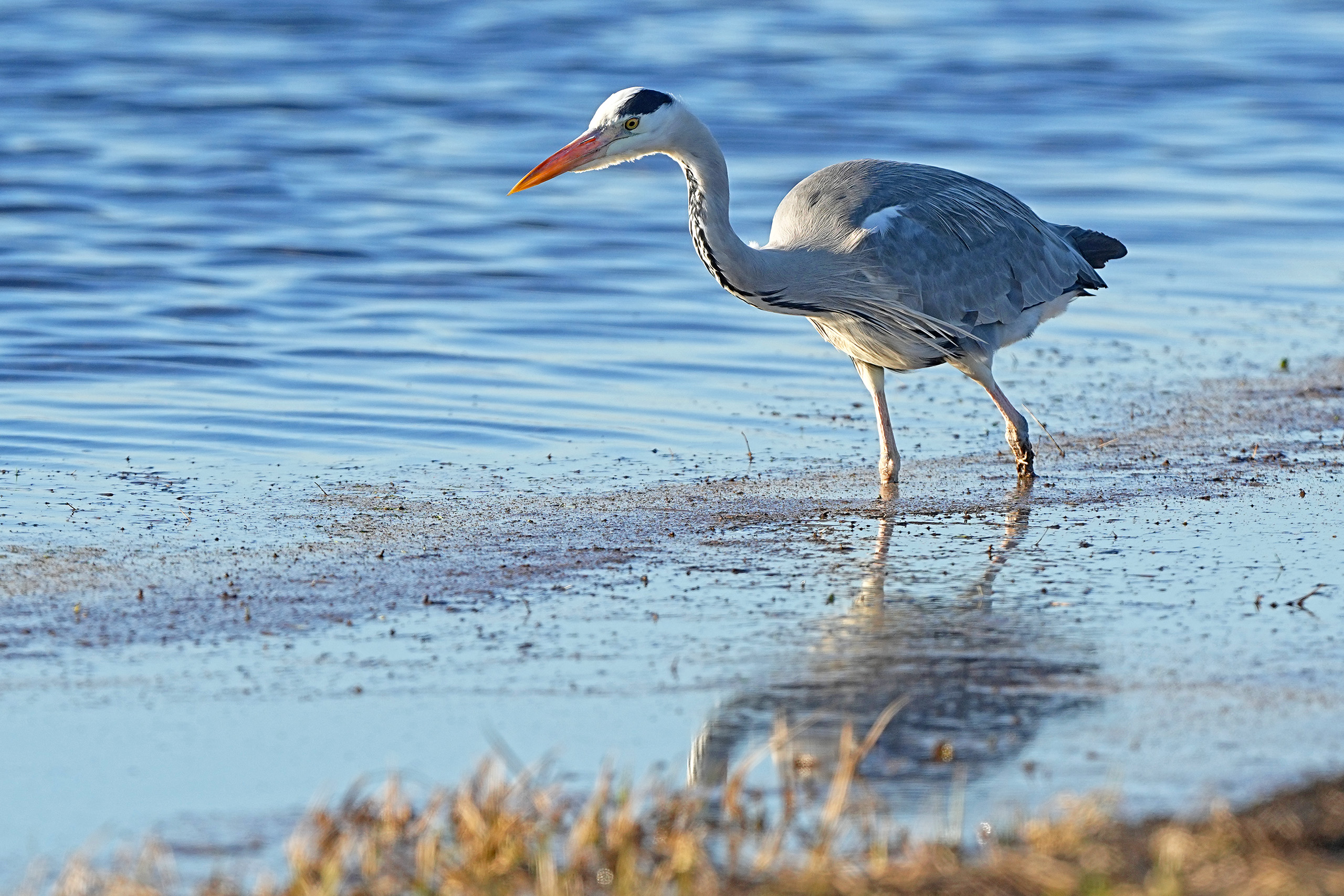 Ein Graureiher liess sich nicht stören und blieb bei der Jagd absolut bewegungslos.