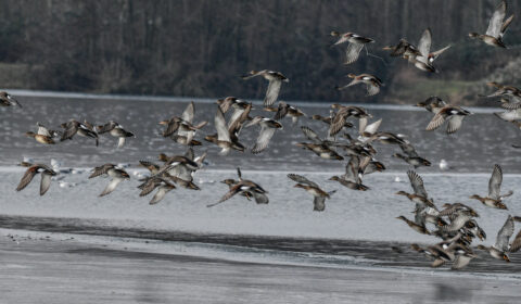 Zwergsäger auf dem Kleinen Bentfelder See, Schellenten auf dem Lippesee und zahlreiche Schnatterenten auf dem Nesthauser See – einige Highlights der heutigen Exkursion an die Sander Seen – leider ohne Sonnenschein.