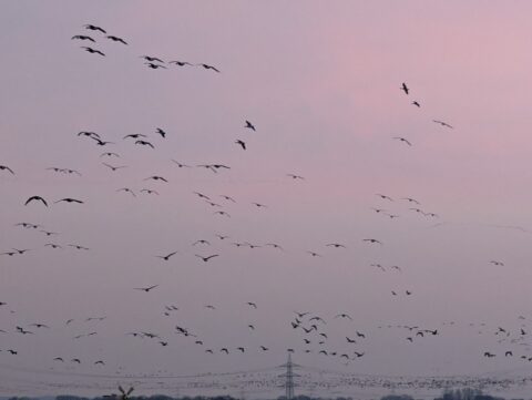 Weiter gings zum Beobachtungsturm, der Sonnenuntergang nahte und wurde zu einem sehenswerten Ereignis! Auf dem Rückweg hatten wir plötzlich das Gefühl, der Himmel würde sich verdunkeln, eine Unzahl von Vögeln, darunter viele Kraniche, flog über uns her. ein eindrucksvolles Erlebnis.