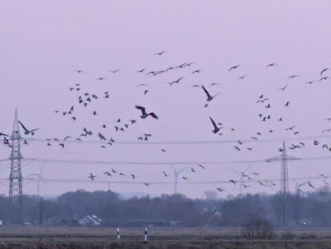 Es sind unfassbare Vogelmengen vor Ort, abertausende Gänse, Kiebitze, Enten, Möwen.. dazu die ersten Brachvögel und Uferschnepfen. Goldregenpfeifer, Kornweihen, usw. und noch viel mehr.