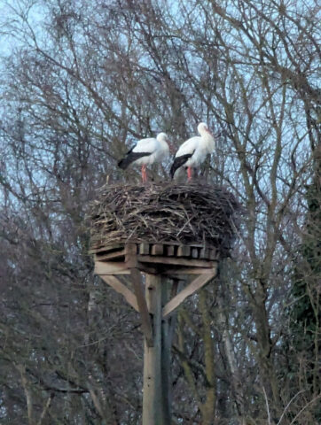 Auf dem Rückweg war das Paar auf dem Storchennest vereint.