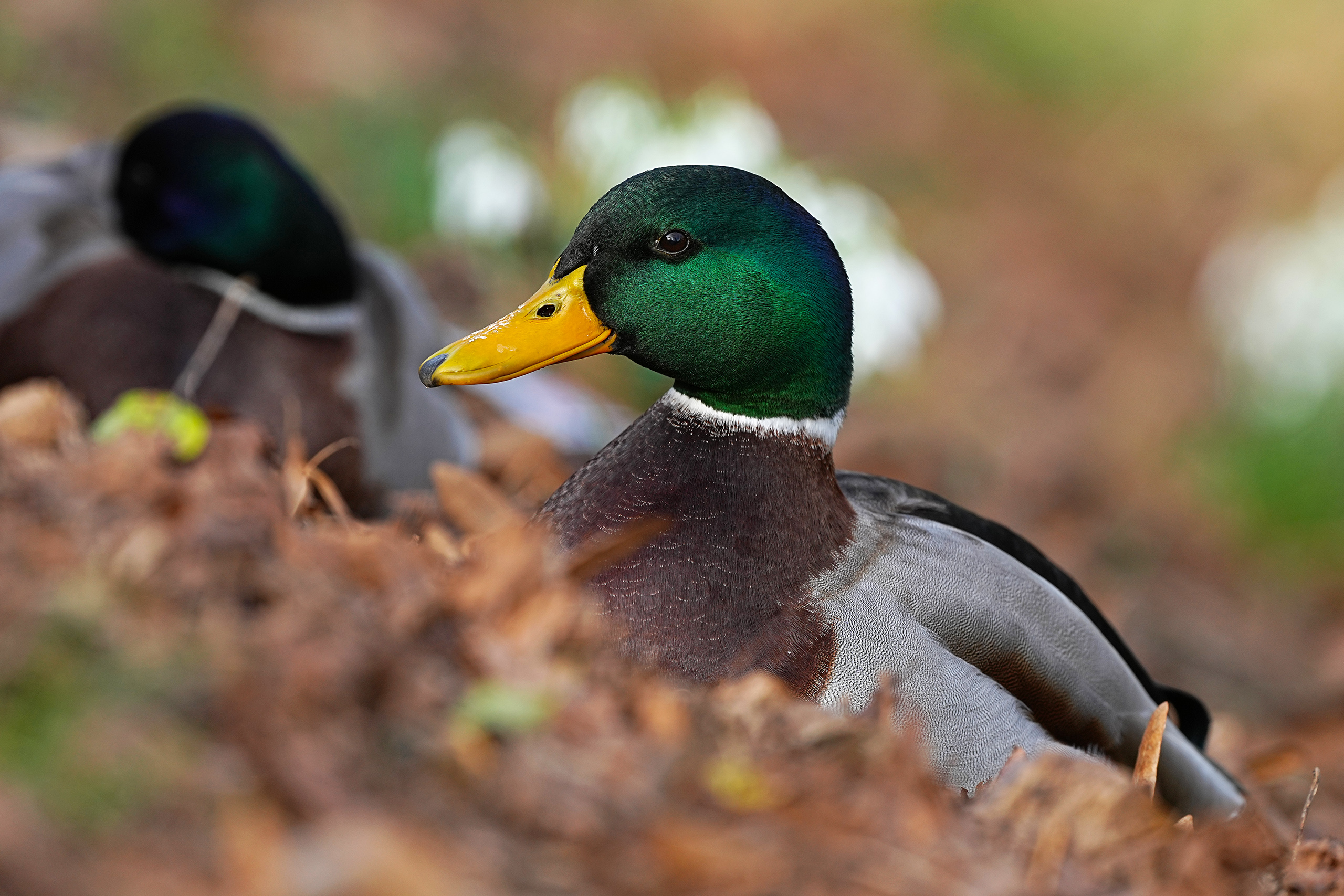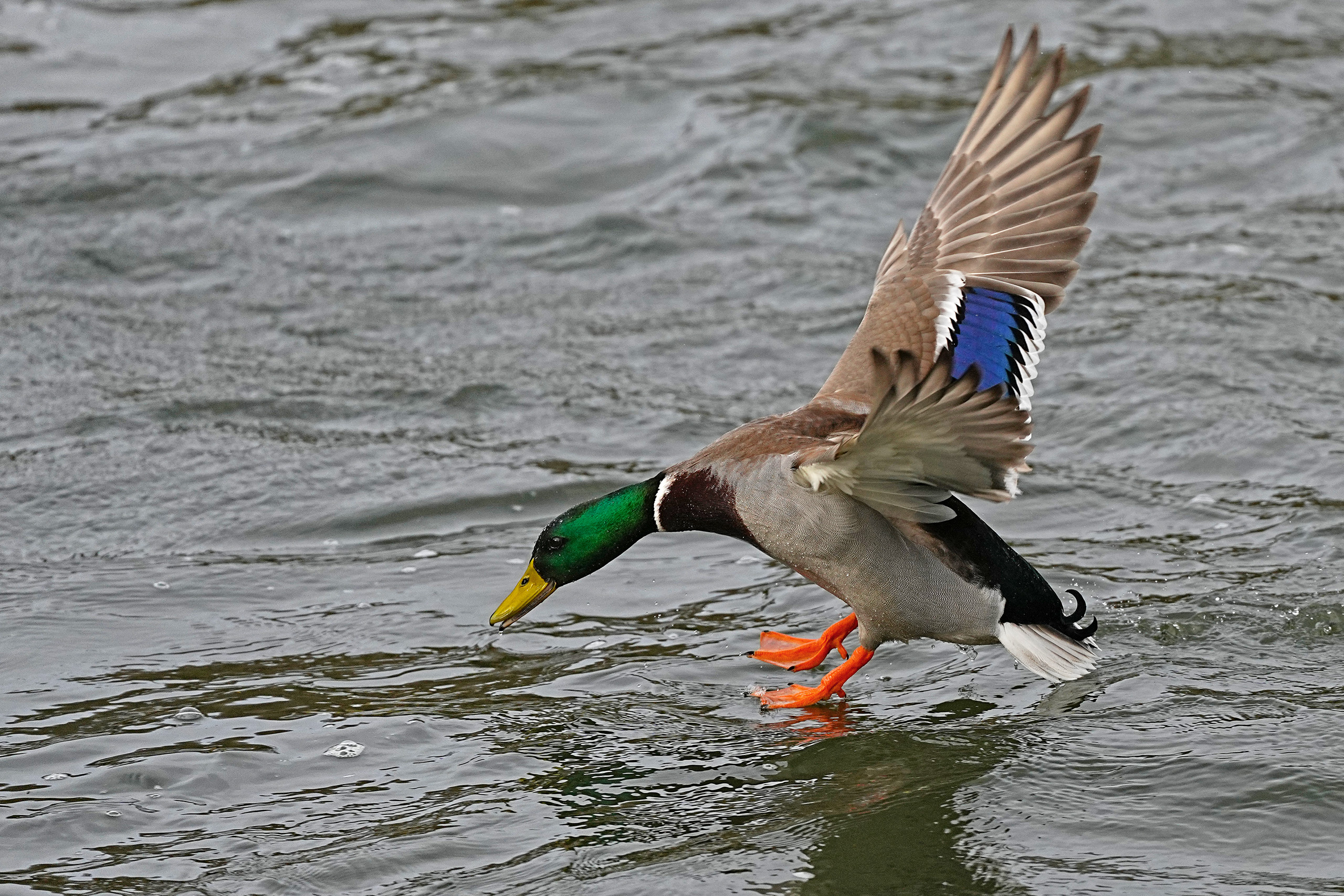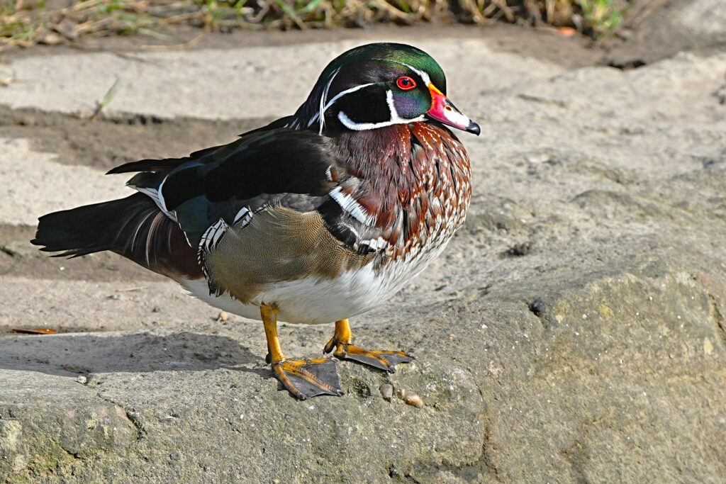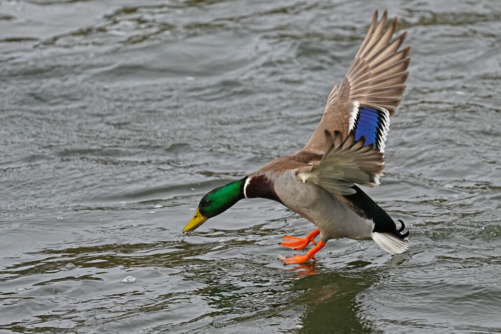 Natürlich sind auch Stockenten zahlreich vertreten. Hier bei der Wasserlandung und beim Entspannen im Gras.