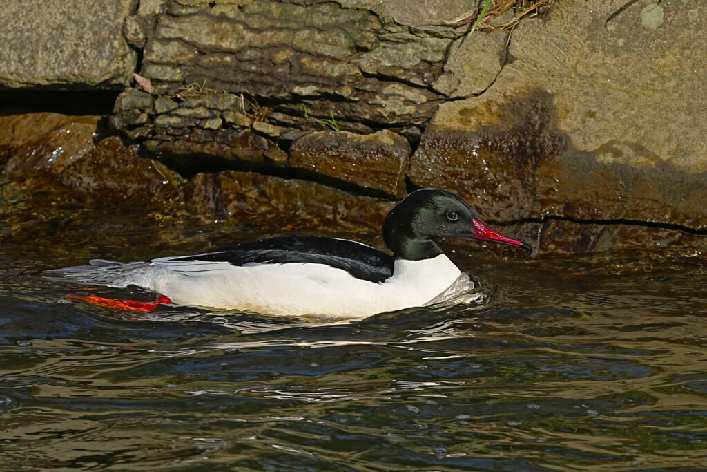 Auch ein Gänsesäger liess sich ablichten. Das Weibchen war nur einmal im Vorbeiflug zu sehen.