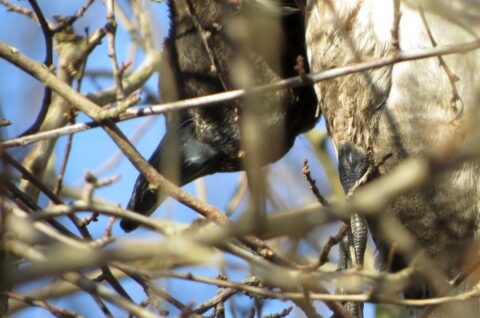 Bezüglich der Familienplanung dieser Blaumeise kann man nur raten. Zwei Zimmer – Küche / Bad reichen ihr offensichtlich nicht aus!