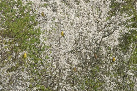 Gestern war ich am Kleekamp unterwegs, um seltene Frühblüher (Scheiden-Gelbstern) zu kartieren. Dabei begleiteten mich zum einen die Gesänge einiger Feldlerchen und zum anderen war der gleiche Ackerschlag voll mit Goldammern (mindestens 20 Tiere), die ab und an in die angrenzende Schlehenhecke flogen, ein netter Einstieg in die Feiertage.