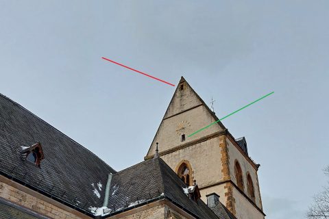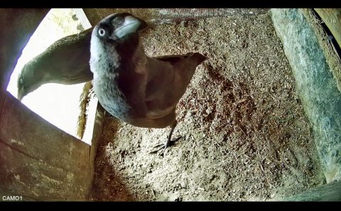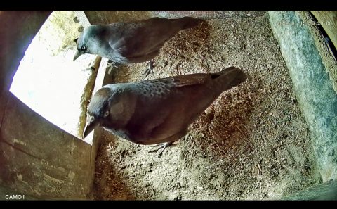 Vor zwei Wochen haben wir in dem oberen der beiden Nistkästen im Turm der St. Johanniskirche in Halle eine WebCam installiert. Schon nach einer halben Stunde konnten wir auf dem Monitor in diesem Kasten (rote Linie) ein Turmfalkenpaar beobachten. Heute interessierte sich ein Dohlenpaar für den Kasten, der von beiden Partnern sehr genau inspiziert wurde. Das Weibchen suchte schon eine passende Ecke für eine mögliche spätere Brut aus. Beide Altvögel flogen wiederholt ein und aus und signalisierten durch Schwanzzittern ihre Paarungsbereitschaft. Eine kurze Paarung fand dann wenig später auch statt. Mal sehen, wer sich durchsetzen wird: Die Turmfalken oder die Dohlen. Es bleibt spannend zu beobachten. Im unteren Kasten (grüne Linie) brüten traditionell Dohlen, der Kasten sagt Dohlen als Niststandort eher zu, da sich dort im Kasten eine abgeteilte, dunklere Ecke befindet, in der die Dohlen bevorzugt brüten. Nach Mitteilung der Küsterin ist geplant, die WebCam-Adresse über die Homepage der Ev. Kirchengemeinde frei zu schalten.