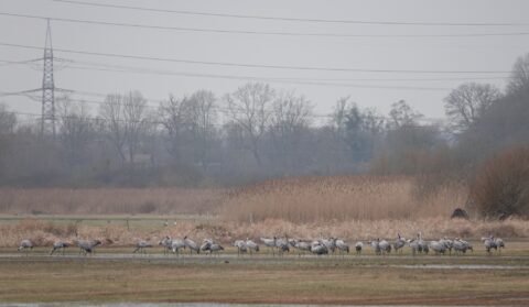 nachdem ich vor einer Woche das Glück hatte, sowohl den Eistaucher als auch die Zwergscharbe am Lippesee nebeneinander beobachten zu können, konnte ich heute endlich auch einmal 4 Zwerggänse inmitten einer größeren Blässgänseschar (>300) in den Ahsewiesen (Lippetal) entdecken. Empfangen wurde ich von einem Trupp rastender Kraniche, ein schöner Einstieg in den Tag. Zudem waren über 100 Kiebitze vor Ort, Brachvögel riefen und es lag daher mehr als ein Hauch von Frühling in der Luft. Somit ein schöner Ausflug, der auf dem Rückweg noch abgeschlossen wurde mit einem kurzen Abstecher zur Vogelbeobachtungshütte Disselmersch.