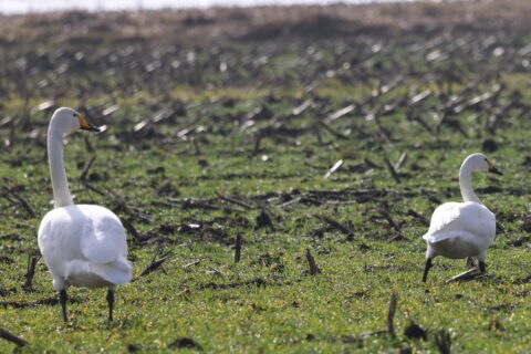 Der Sonntag sollte dann das Ganze noch toppen, auf dem Rückweg in die Tinnerdose mit wunderbarem Feldlerchengesang und gleich 4 Raubwürgern, danach ins Groß Heseper Moor um einen Lifer für zwei von uns zu finden, den Kanadakranich. Leider gab es keine aktuellen Meldungen und so mussten wir etwas länger suchen. Als erstes gab es dann Singschwäne mit einem Zergschwan. Auch super. Und dann, bei so vielen geschulten Augen zu hoffen, haben wir ihn mit ein bisschen Glück gefunden und das bei schönstem Wetter.