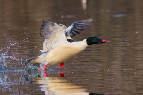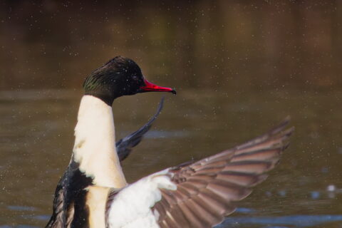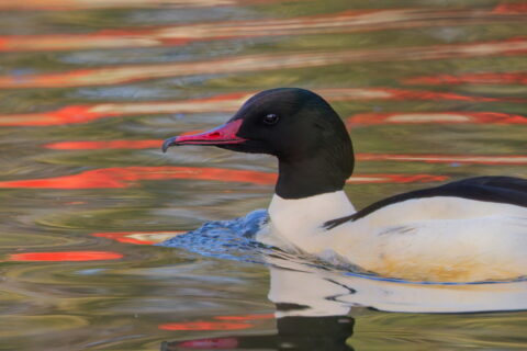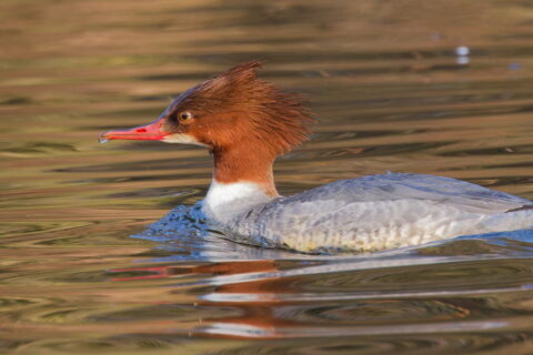 Etwa 20 Gänsesäger und einzelne Kormorane waren heute am Bockschatzteich.