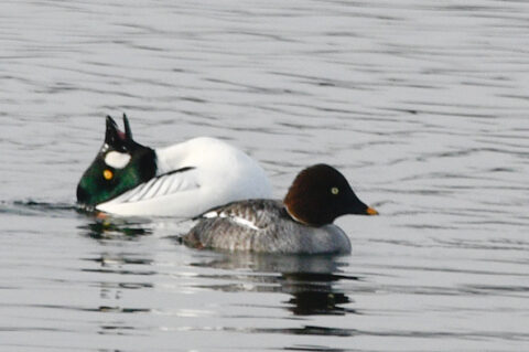 Der Eistaucher hielt sich heute auch noch im östlichen Bereich auf (Belegfoto). Am Seeufer frische Spuren von Biberaktivitäten. Auf dem benachbarten Nettelnbrecker See kann man Schellenten bei der Balz beobachten.