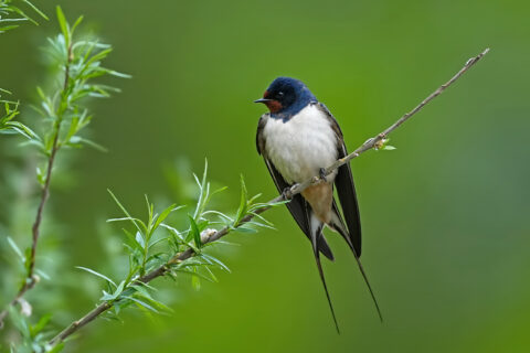 Unzählige Rauchschwalben (Bild 04) flogen dicht über dem Weg und der Kranichwiese, manchmal ließen sie sich wenige Meter vom Weg auf einem Zweig nieder.