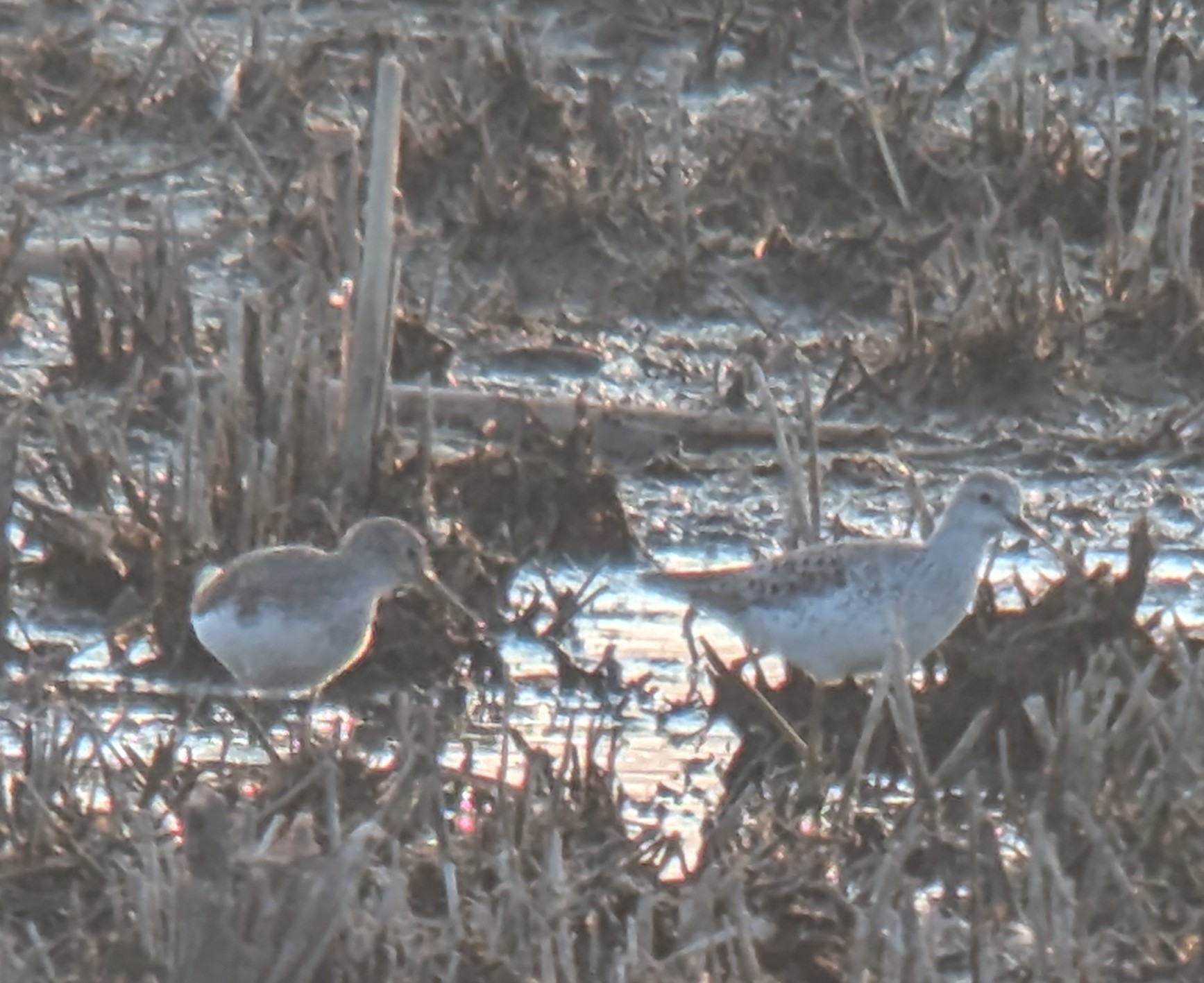 Leider habe ich den Teichwasserläufer gestern erst spät im Gegenlicht entdeckt und konnte auf ca. 400m durchs Spektiv ein paar Belegfotos und ein kurzes Video machen. Die Nachsuche heute blieb bisher erfolglos. Das Enger Bruch scheint für diese seltene Limikole ein gutes Gebiet für einen kurzen Tankstop zu sein. Immerhin schon meine dritte Beobachtung hier. Es handelt sich vermutlich um ein nicht ganz ausgefärbtes Tier aus dem letzten Jahr. Spannend waren auch das hektische Verhalten, welches mich etwas an einen Stelzenläufer erinnert hat.