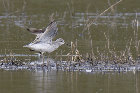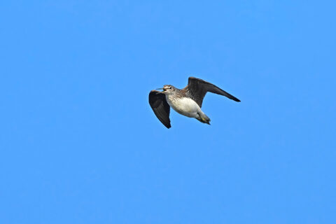 Als plötzlich fast alle Limikolen, Enten, Gänse, Reiher, etc. aufflogen (Ursache unbekannt), erwischte ich den Waldwasserläufer (Bild 01) rufend im Flug.