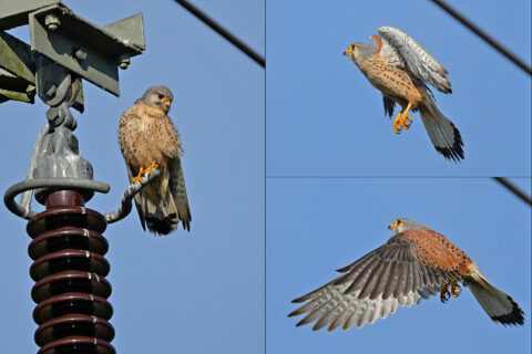 Der Turmfalke (Bild 02) ließ sich im Anflug auf „seinen“ Strommast ablichten.