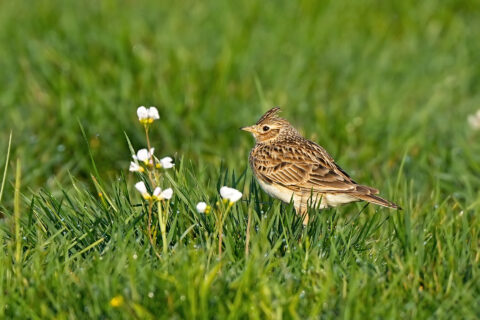 Eine Feldlerche (Bild 01) mit aufgestellter Haube weckt immer den Gedanken an eine Haubenlerche.