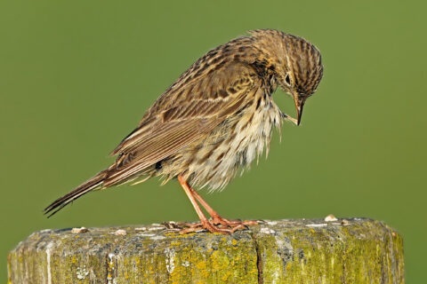 Der Wiesenpieper (Bild 03) putze sich nach einem Bad ausgiebig!