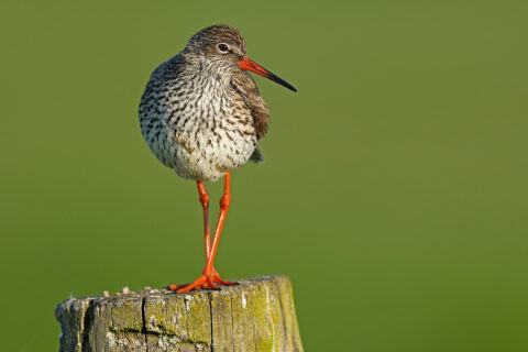 Ein Rotschenkel (Bild 04) genoss den Sonnenschein und wachte aufmerksam über sein Revier.