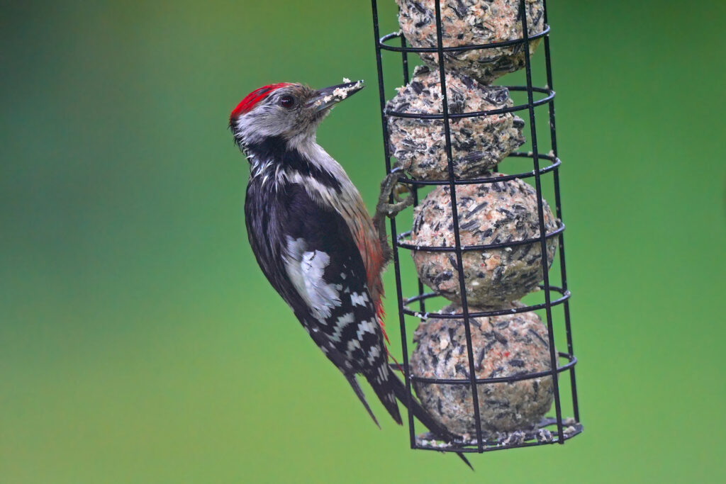 Der Mittelspecht (Bild 01 – 02) kommt aktuell wiede gerne an die Futterstellen, besonders wenn als „Tagesgericht“ Meisenknödel auf der Karte stehen.