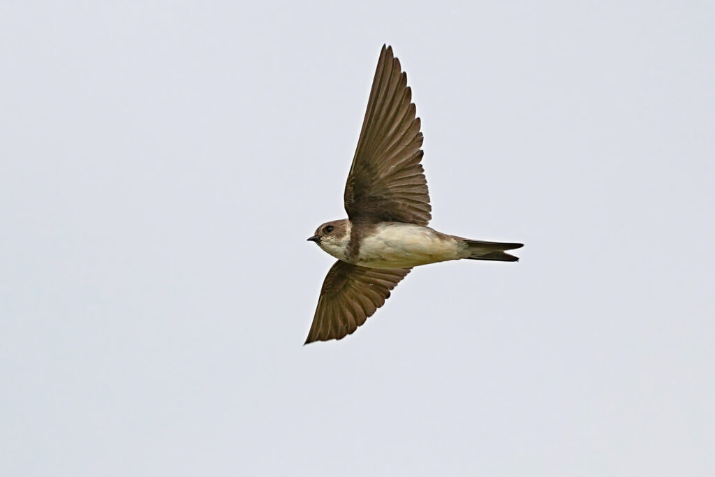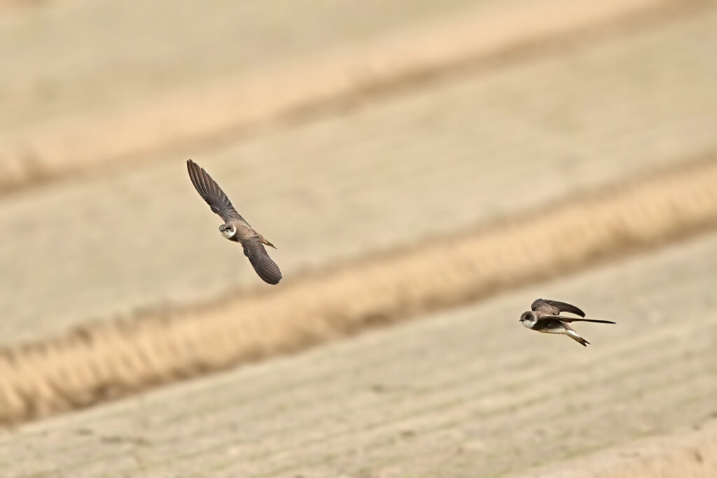 An einer geeigneten Position konnte man die Uferschwalben über einem Feld bei der Jagd nach Insekten beobachten, hierbei kamen sie auch recht Nahe und mit viel Mühe erwischte man eine schön im Flug.