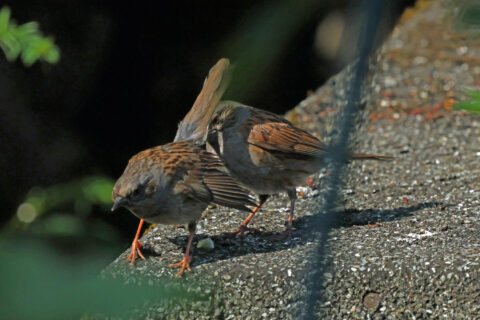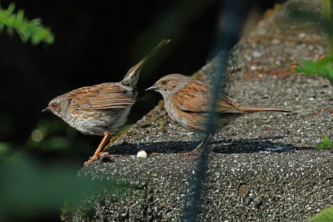 Eine interessante Verhaltensweise habe ich jetzt in unserem Garten beobachtet: Das Kloakenpicken bei der Heckenbraunelle. Zufällig hatte ich die Kamera in der Hand, sodass ich eine Bildserie machen konnte. Heckenbraunellen pflegen ein sog. promiskes Paarungssystem, bei dem Weibchen mit mehreren Männchen kopulieren und umgekehrt ein Männchen mit mehreren Weibchen. Bei der Abfolge des Kloakenpickens bleibt das Weibchen nach einer meist wilden Verfolgungsjagd plötzlich mit herabhängenden und zitternden Flügeln sowie aufgerichtetem Schwanz stehen. Für das hinter dem Weibchen gelandete Männchen ist das das Signal, mit dem Schnabel gegen die Kloake des Weibchens zu picken, worauf dieses einen Flüssigkeitstropfen mit Spermainhalt (von früheren Begattungen) absondert. Das Männchen kopuliert nun mit der Partnerin und hat gute Chancen, selbst Vater einer Folgegeneration von Heckenbraunellen zu werden.