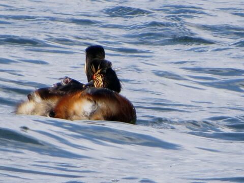 Es haben sich 2 Milane gezeigt. Ein Rotmilan, der leider schnell wieder hinter den Bäumen verschwunden ist und ein Schwarzmilan (Bilder 1-3). Der ist im Sturzflug runter und hat sich hinter der Kranichwiese einen Frosch gekrallt.