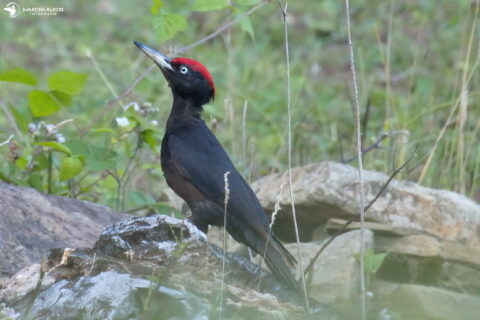 Dieses Schwarzspecht-Männchen konnte ich in Vlotho Borlefzen in der Abenddämmerung