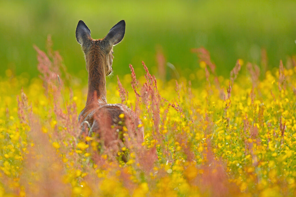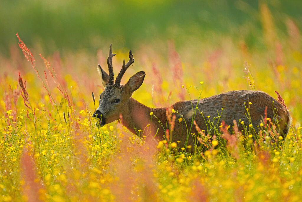 Das Rehwild war ganz in seinem Element und liess sich die Blüten und Gräser auf der Kranichwiese schmecken. Irgendwie haben die mich überhaupt nicht wahrgenommen.