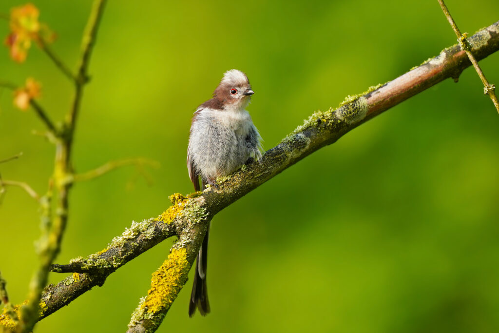 Zuerst dachte ich, da ist jemandem sein Papagei entflogen, aber der seltsame Paradiesvogel entpuppte sich als junge Schwanzmeise.