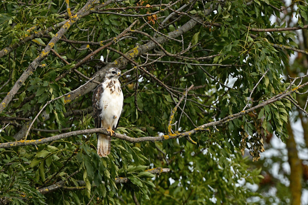Ein Mäusebussard saß die ganze Zeit über im Baum, er hatte sein Frühstück wohl schon gehabt.
