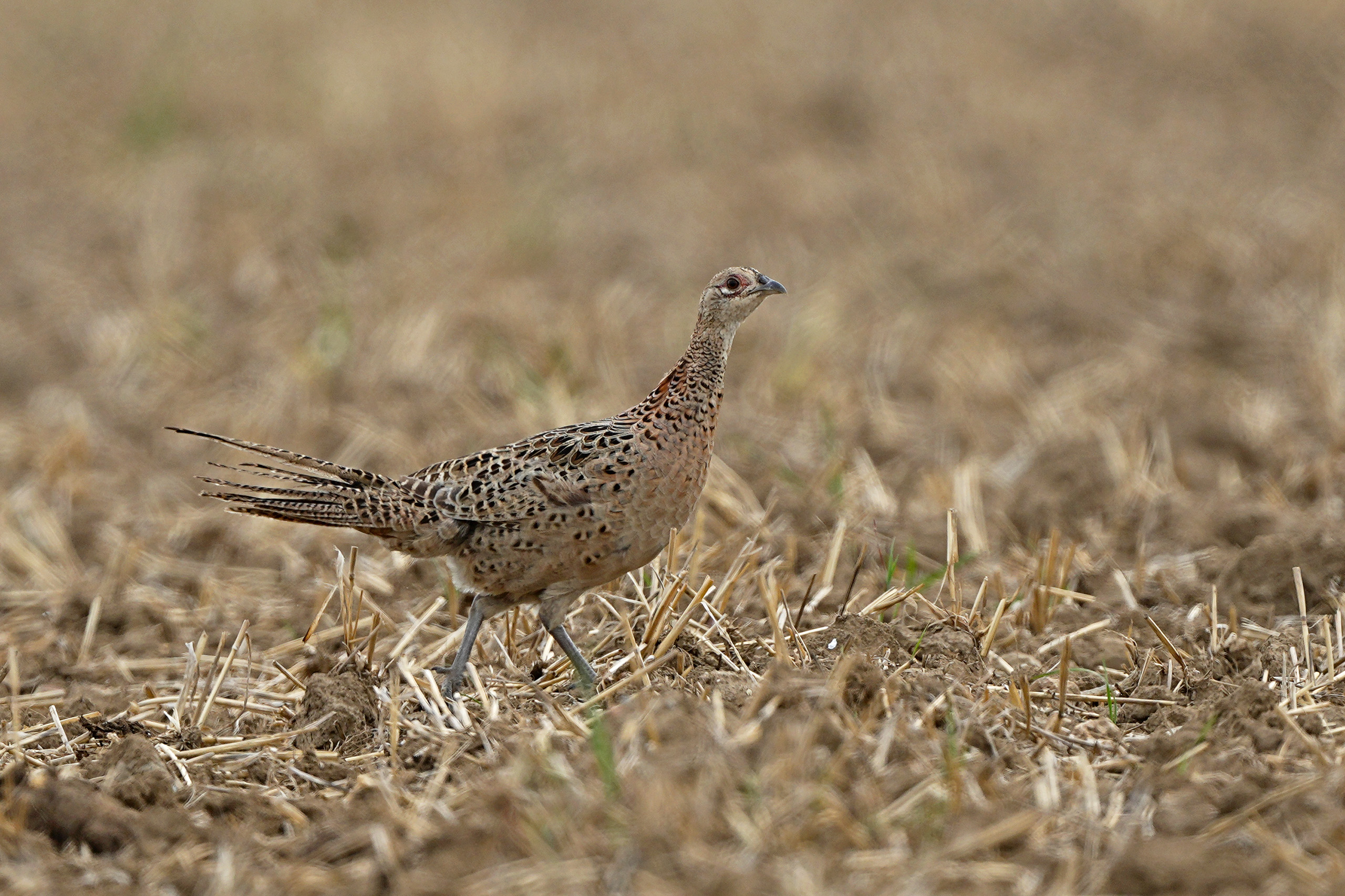 Die weiblichen Fasane und der zahlreiche Nachwuchs passen perfekt ins Gelände.