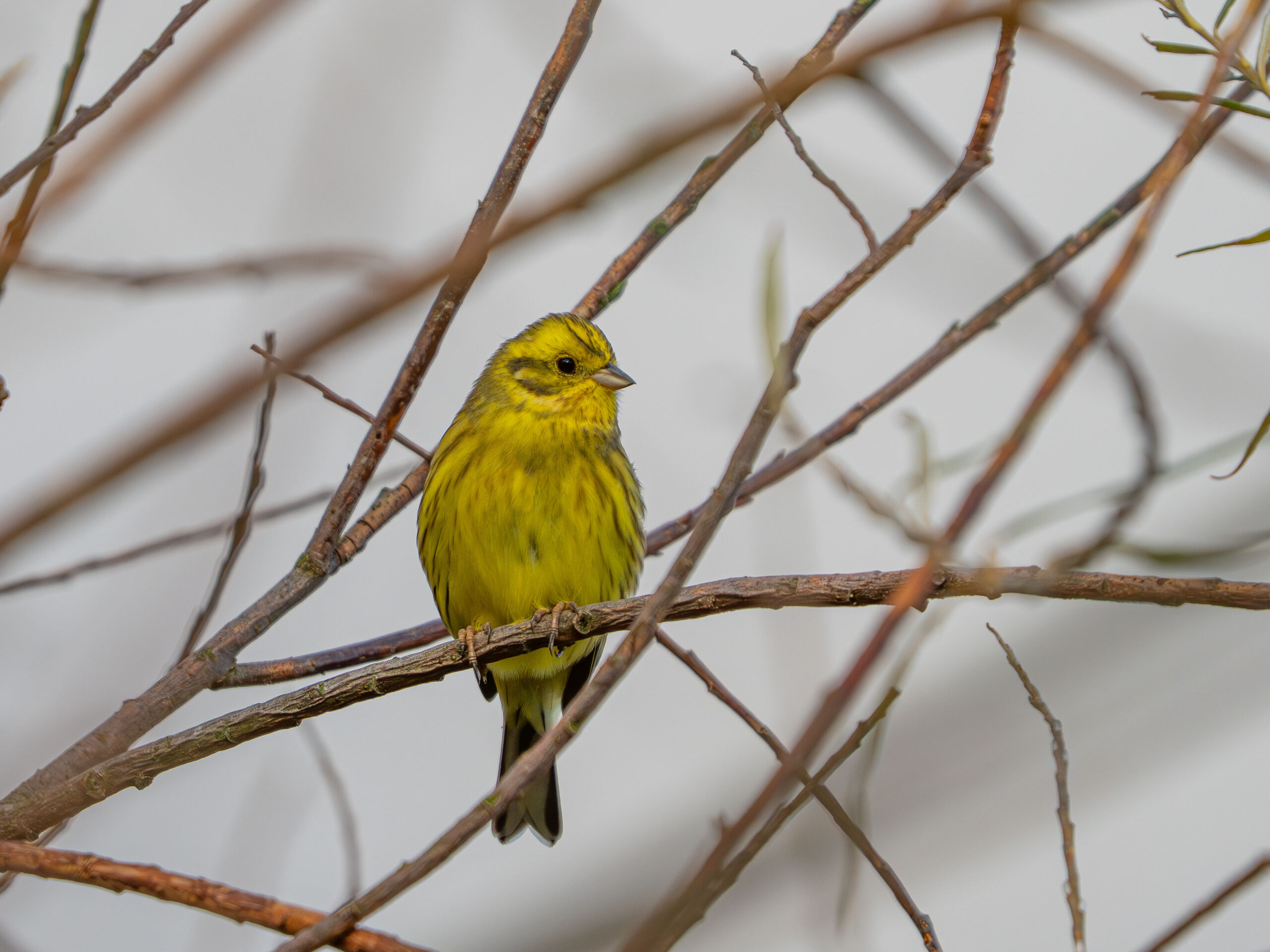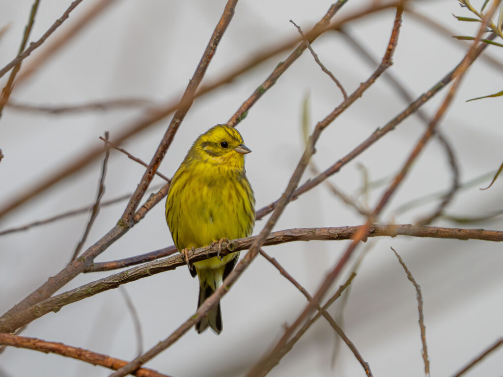 Da haben sich einige Goldammern getummelt. Ich konnte leider nich genau zählen wie viele es waren. Aber ich schätze mal so ca. 20-30 Stück, die immer wieder hin und her geflogen sind.