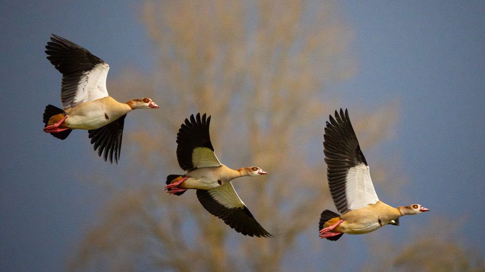 Die Kranichwiese wurde auch wieder gemäht. Dabei sind dann die Nilgänse aufgeflogen. Es war leider schon etwas zu dunkel. Aber ist trotzdem noch ein ganz gutes Bild geworden finde ich.