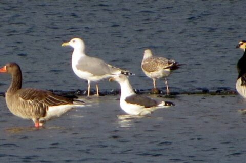 links von der Heringsmöwe steht übrigens eine Steppenmöwe…recht schmaler Schnabel, recht schmaler Kopf, dunkleres Auge.