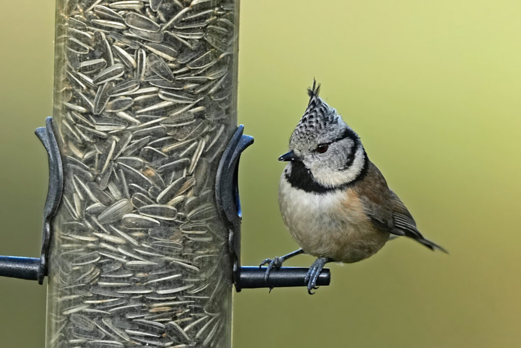 Da ich aktuell wieder Erdnuss-Splits anbiete, welche wohl bei Haubenmeisen sehr beliebt sind, staunte ich nicht schlecht, als plötzlich sogar 2 auftauchten.