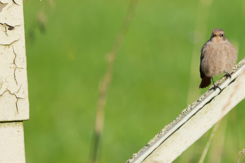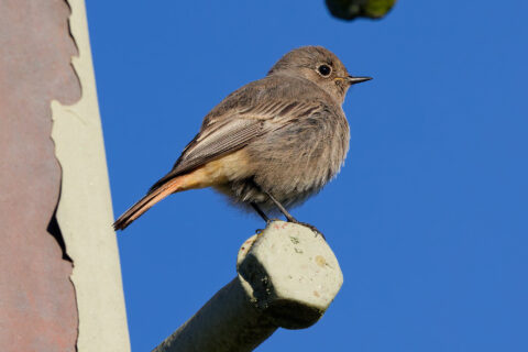 heute auf dem Rückweg konnte ich auf einem Hochspannungsmasten einen späten Hausrotschwanz entdecken, der offenbar nicht von hier war und nicht sehr scheu.