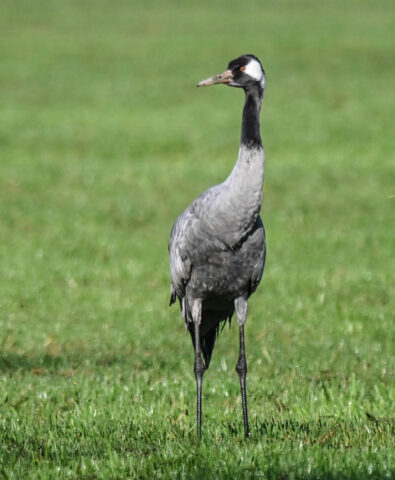 Etwas verloren wirkte ein einsamer Kranich, der heute kurze Zeit auf einer Wiese in Sende Station machte, bevor er sich nach Westen aufmachte. Kürzlich landete ein Rotmilan auf dem abgeräumten Grasacker. Und die Früchte des Feuerdorns sind gerade ein Anziehungspunkt für einige Futtergäste wie Misteldrossel, Amsel usw..