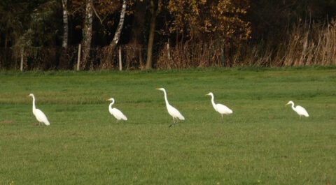 Heute hielten sich mindestens 12 Silberreiher und 15 Graureiher am Hücker Moor auf.