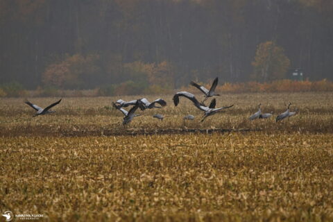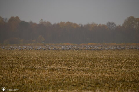 Die Kraniche sammeln sich zu immer größeren Trupps. Auf einem