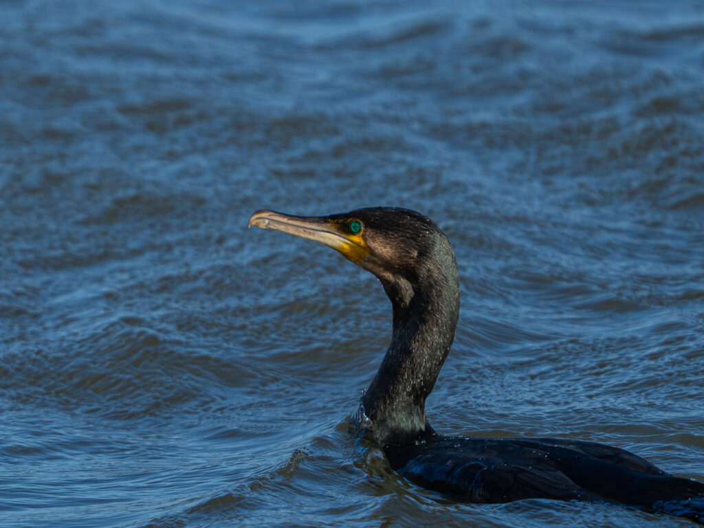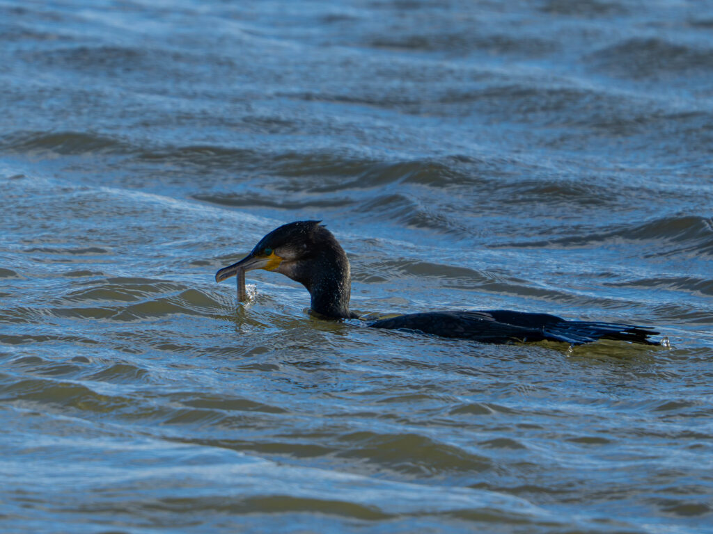 Den Kormoran habe ich leider nicht so gut mit seiner Beute erwischt. Dafür habe ich sein schön leuchtendes Auge einfagen können. Ich würde schon fast behaupten, dass Kormorane von allen heimischen Vögeln die schönsten Augen haben.