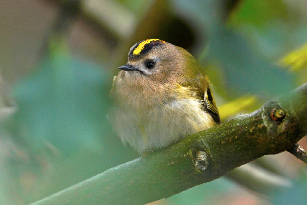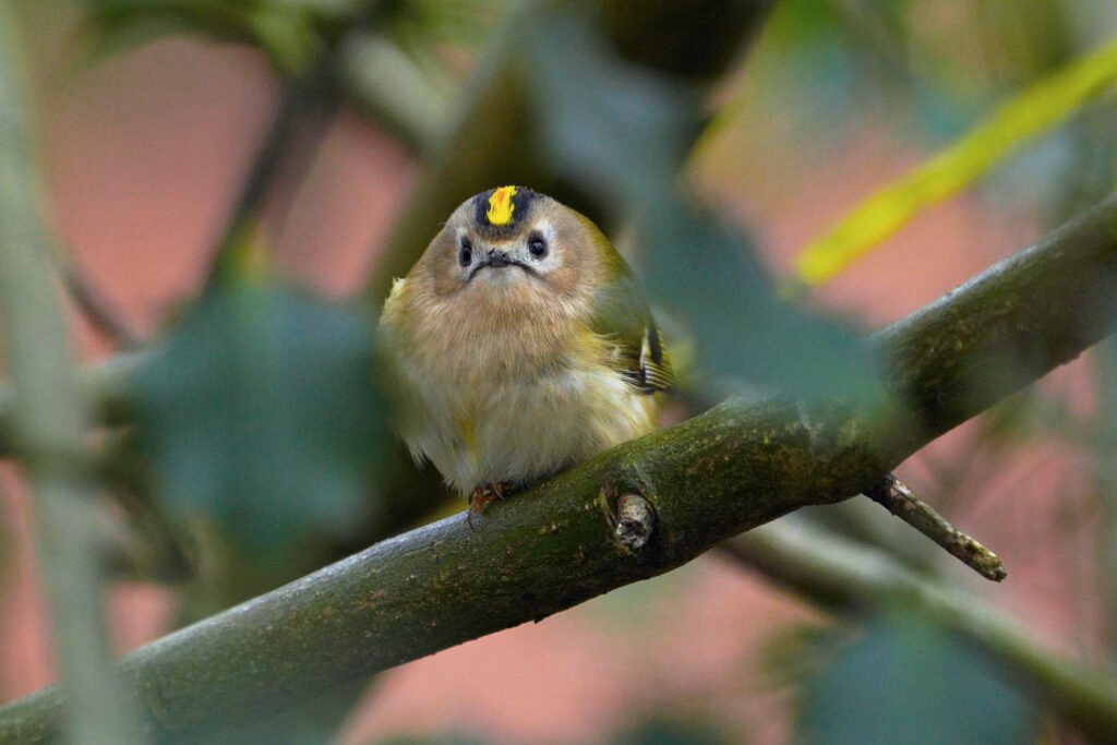 Auf dem Weg zurück hörte ich dann in (ich vermute) Ilex Büschen die leisen Rufe der Wintergoldhähnchen. Ganz langsam pirschte ich mich an die Büsche ran und wartete.