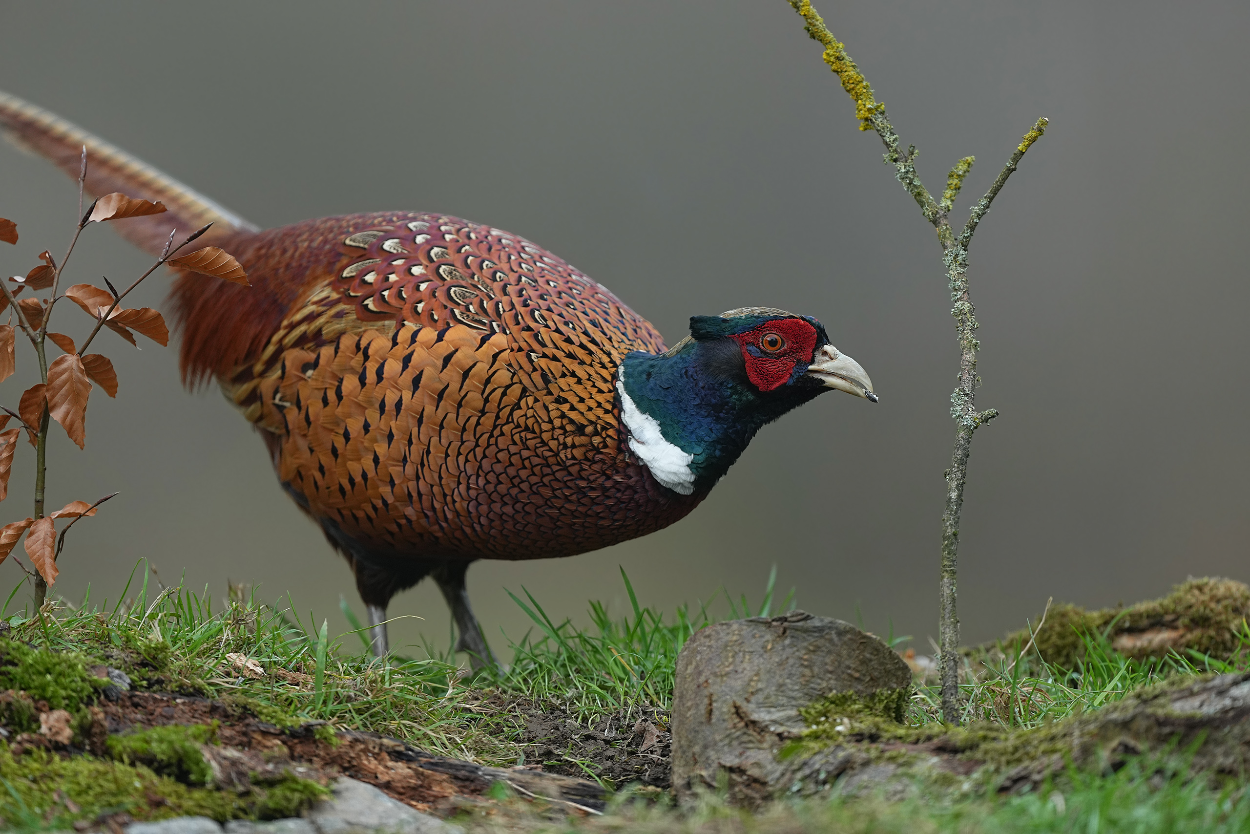 Sehr dankbar bin ich auch über diesen schönen Vogel, den Fasan. Er sammelt fleißig heruntergefallenes Futter auf.