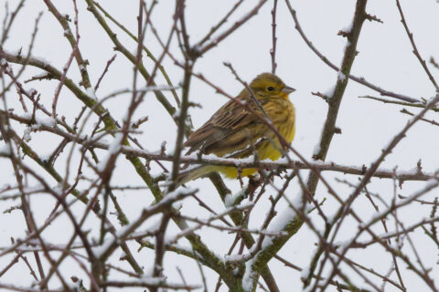 6 Gimpel knabberten an den Knospen der Schlehe, ein Fasan holte sich runtergefallenes Futter. Ansonsten war ein Trupp von 14Wacholderdrosseln unterwegs. Kernbeißer, Goldammern, Bergfinken und viele Elstern. Gestern noch ein größerer Trupp Feldlerchen beim Überflug an gleicher Stelle.