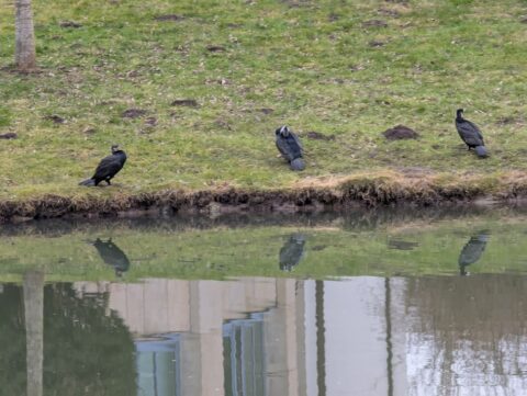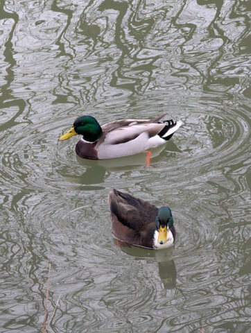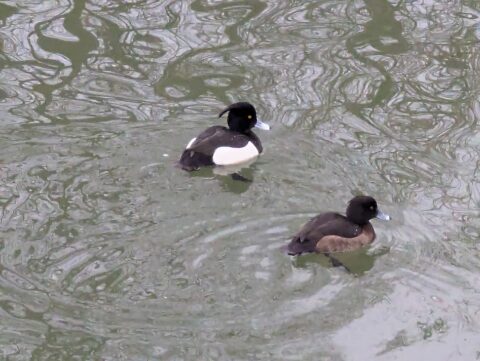 Bei einem Spaziergang an der Aa konnten gestern von uns zahlreiche Reiherenten sowie drei Kormorane beobachtet werden. Zu einem Stockentenerpel hatte sich eine Stockente var. Domestica gesellt.