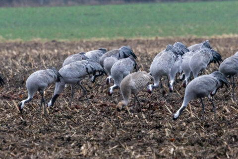 Vom 04.02. bis mindestens zum 22.02.2026 rasteten in Halle/W. im OT Kölkebeck etwa 300 Kraniche, die eifrig auf abgeernteten Maisäckern und Grünflächen nahrungssuchend unterwegs waren. Die trompetenartigen Rufe waren weithin zu hören und einzelne Kraniche vollführten schon ihre Sprünge und waren in Balzstimmung. Eine so große Rastgemeinschaft habe ich hier in Ostwestfalen noch nicht erlebt, ein eindrucksvolles Erlebnis diese imposanten Vögel in der ostwestfälischen Kulturlandschaft beobachten zu können.