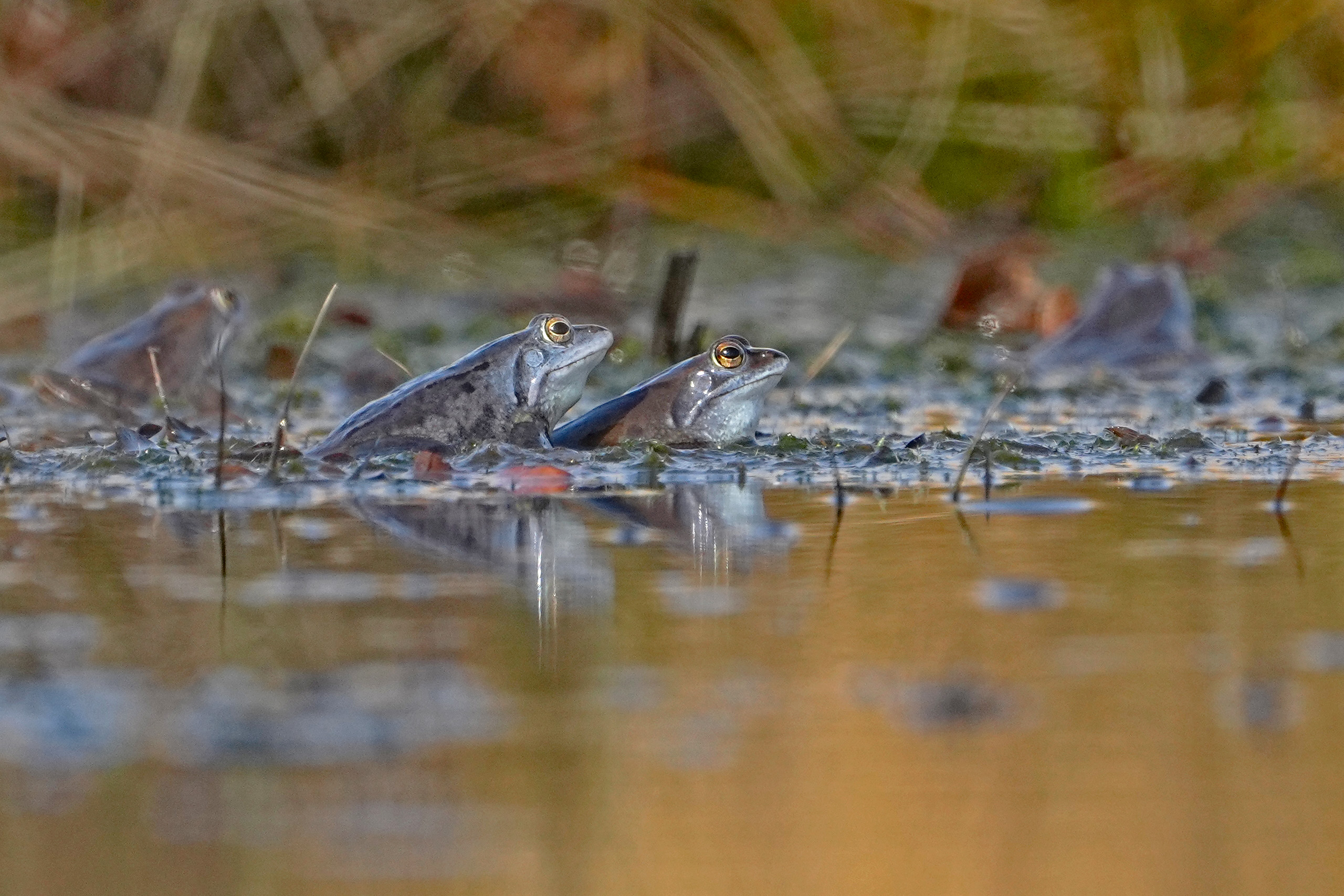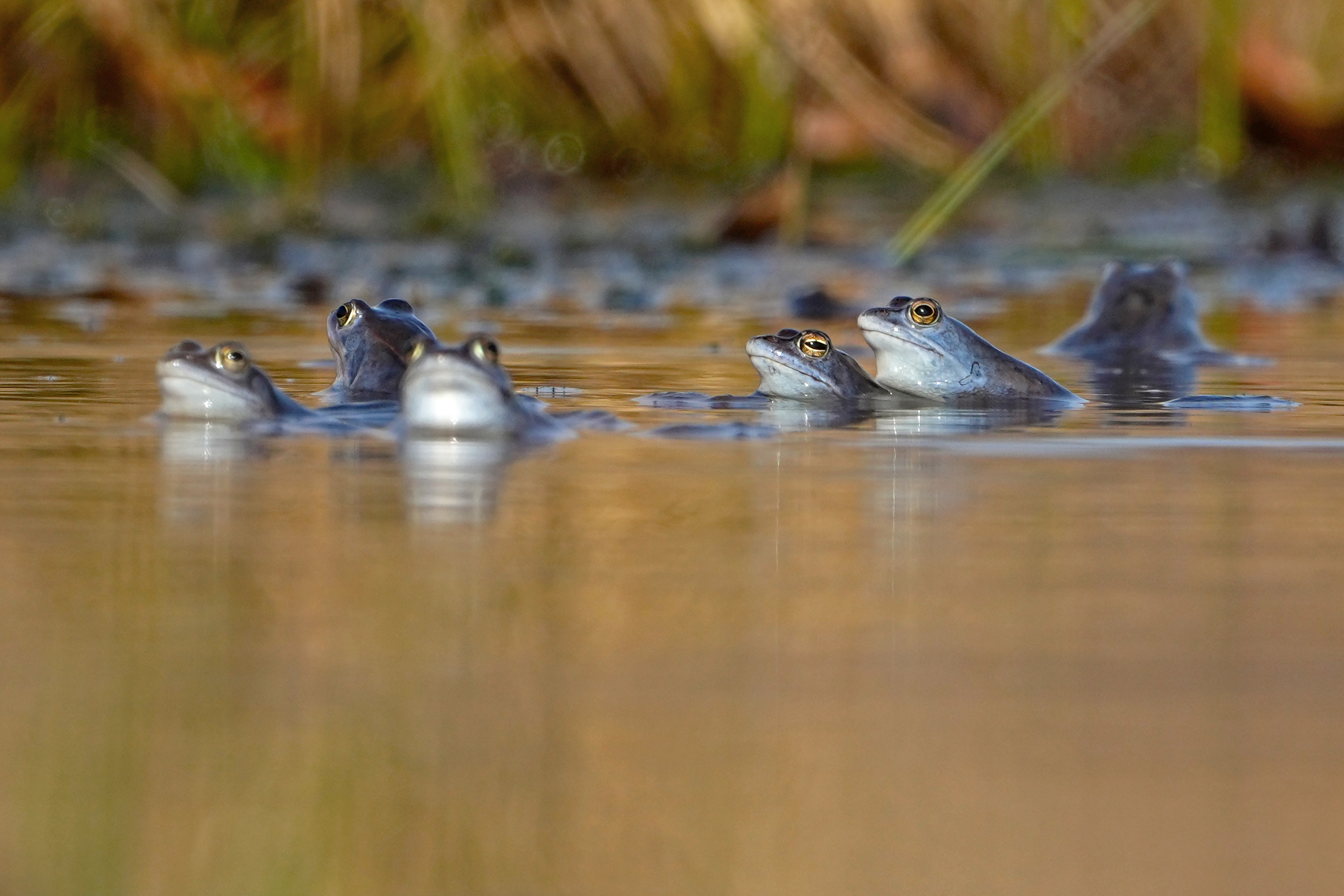 Tatsächlich sind die Moorfrösche kräftig am „Blubbern“, aber der große Teil ist irgendwo in den Flächen versteckt. Das war letztes Jahr besser, aber ein paar habe ich trotzdem erwischt.