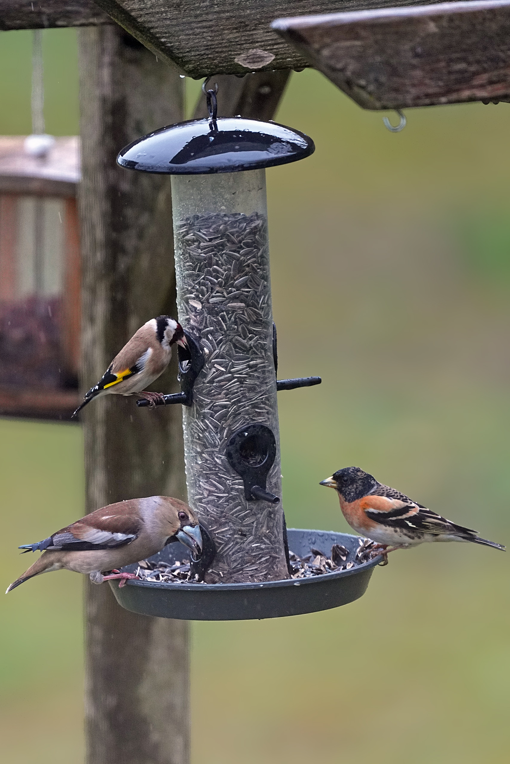 .. wenn Kernbeißer, Stieglitz und Bergfink gemeinsam an der Futtersäule sind,..