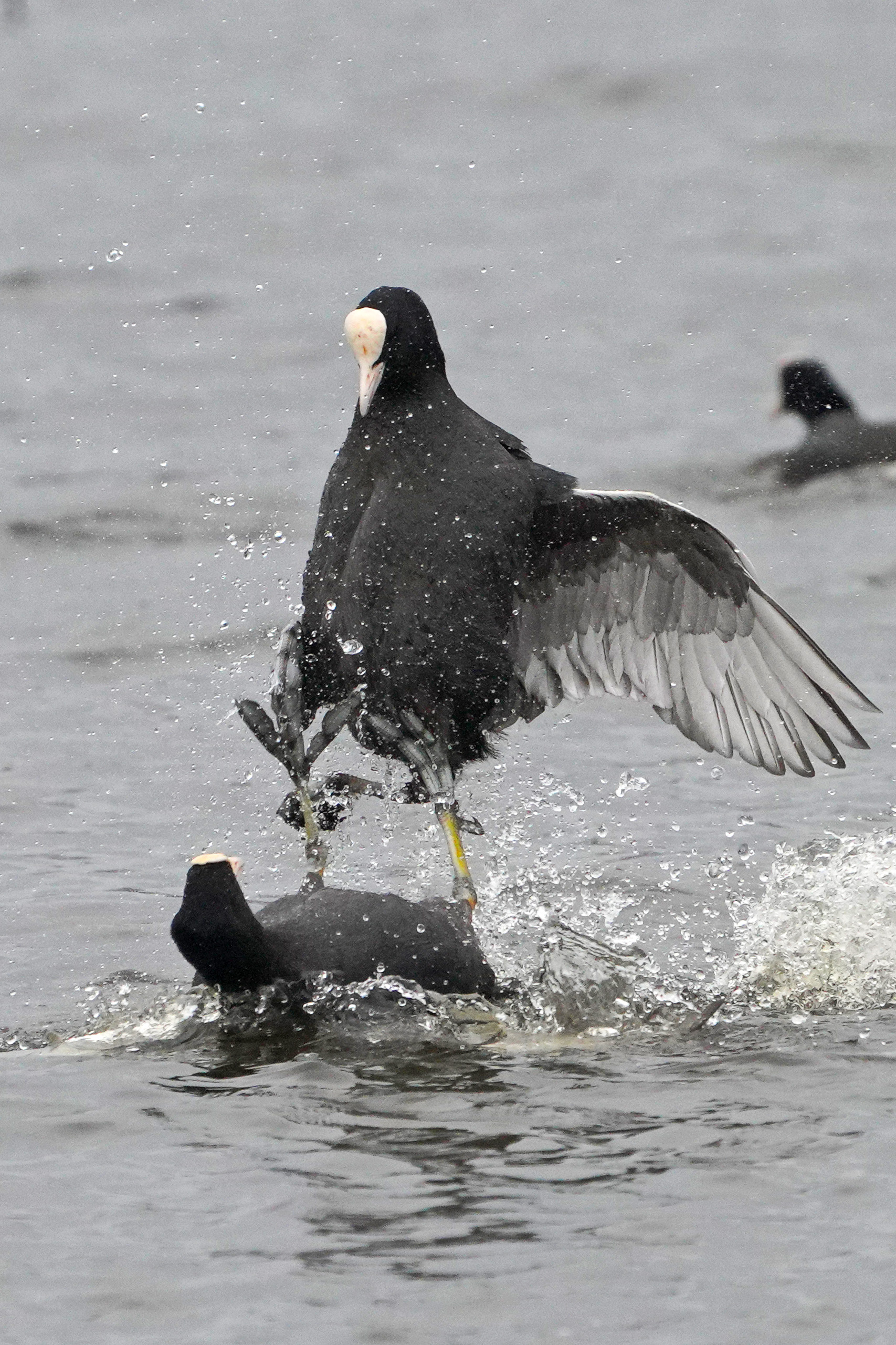 Aus dem Enger Bruch von heute Morgen noch die kämpfenden Blässhühner.