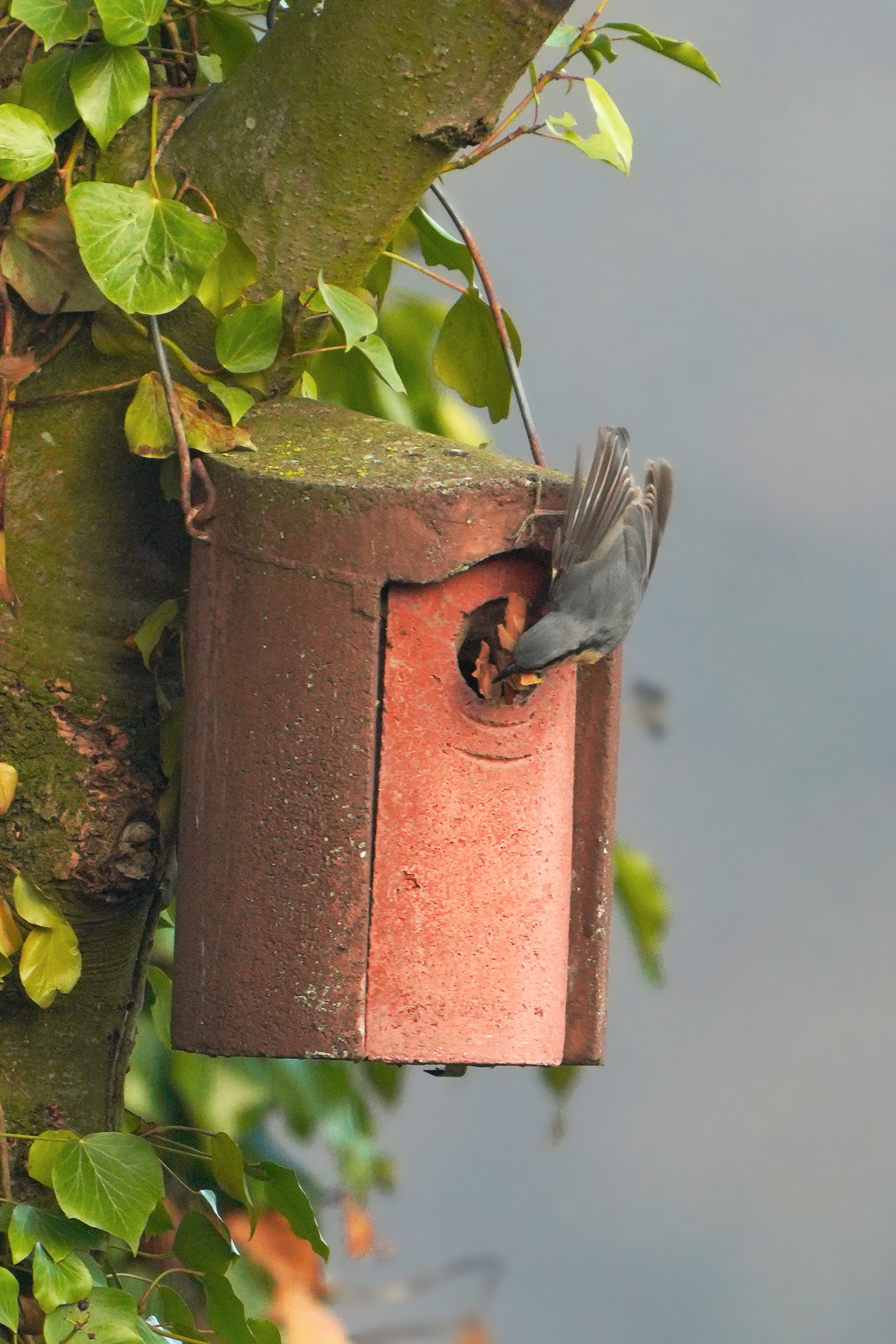 Inspizierte diese und entsorgte auch gleich Teile des bereits eingetragenen Nistmaterials der Kleiber.
