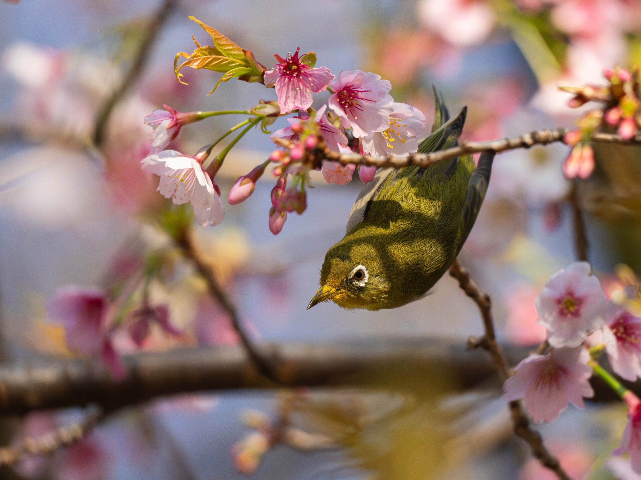 Und zu guter Letzt kommt der Vogel auf den ich es am meisten abgesehen hatte. Den Japanischen Brillenvogel. Die waren noch eine größere Herausforderung als die Maskenammern. Extrem wuselige kleine Vögel, die von Blüte zu Blüte hüpfen um sich den Nektar zu holen. Natürlich habe ich das Glück gehabt ihn auch in einem Kirschbaum zu erwischen.